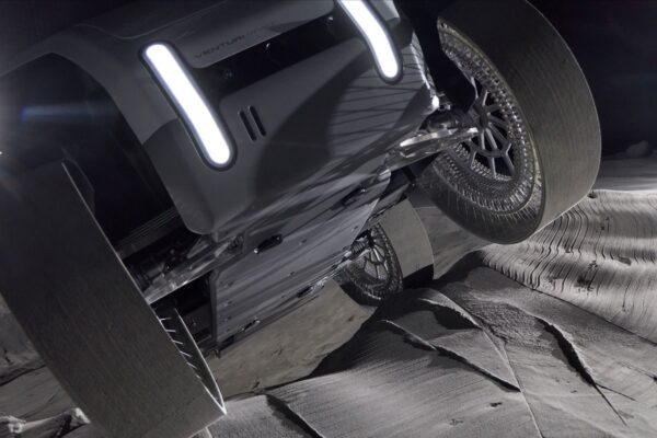 - L’aire de contact des roues hyper-déformables est remarquable, sur sol meuble comme sur terrain vallonné. C’est une confirmation de tests intensifs réalisés à la NASA entre 2022 et 2025,