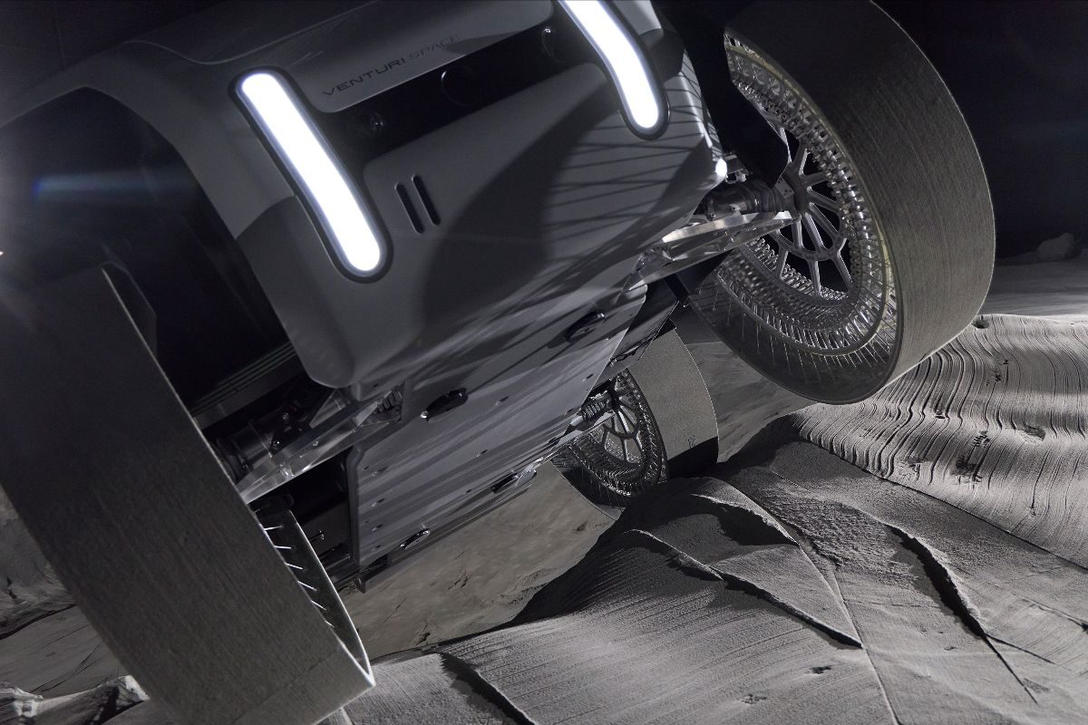 Designed to support the ambitions of the European Space Agency (ESA) and France’s Centre National d’Études Spatiales (CNES), MONA LUNA already incorporates technologies that will operate on the Moon next summer — but on board another rover: FLIP. This vehicle will be equipped with the same hyper‑deformable wheels, batteries, heating systems and temperature sensors as the European rover. FLIP is developed by the North American company Venturi Astrolab, Venturi Space’s strategic partner. FLIP will also benefit from another innovative technology developed by Venturi Space: the mechanical system enabling the rover to exit the lunar lander. Another shared feature between MONA LUNA and FLIP is their bodywork, designed by Sacha Lakic.